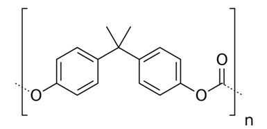 由雙酚A制得的聚碳酸酯結(jié)構(gòu)。
